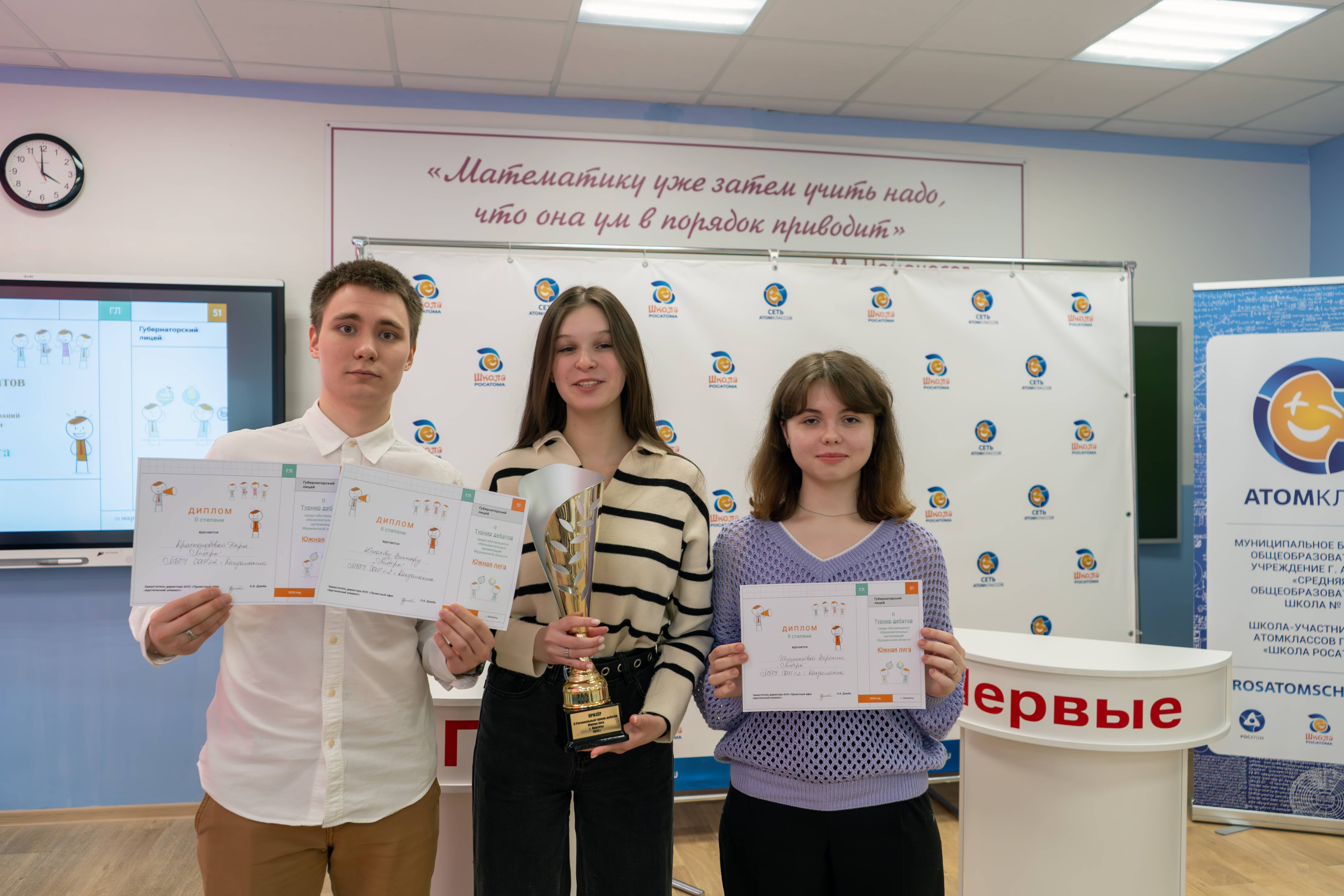 29 марта на базе школы № 4 города Апатиты состоялись игры Южной лиги II Турнира дебатов среди школьников Мурманской области. В Турнире приняли участие 9 команд из Апатитов, Кировска, Ковдора, Умбы, Мончегорска, Оленегорска и Кандалакши Для участников турнира дебаты стали возможностью развивать критическое мышление, формировать культуру спора и активную гражданскую позицию. В ходе перекрестных вопросов ребята обменивались мнениями по самым обсуждаемым темам в образовании. Призерами соревнований стала команда «Лидеры» из СОШ № 2, (Кандалакша), победителем соревнований стала команда «Амперсанд» из школы № 4 Оленегорска. Очень важно, что среди участников была команда, которая участвовала в турнире уже во второй раз.