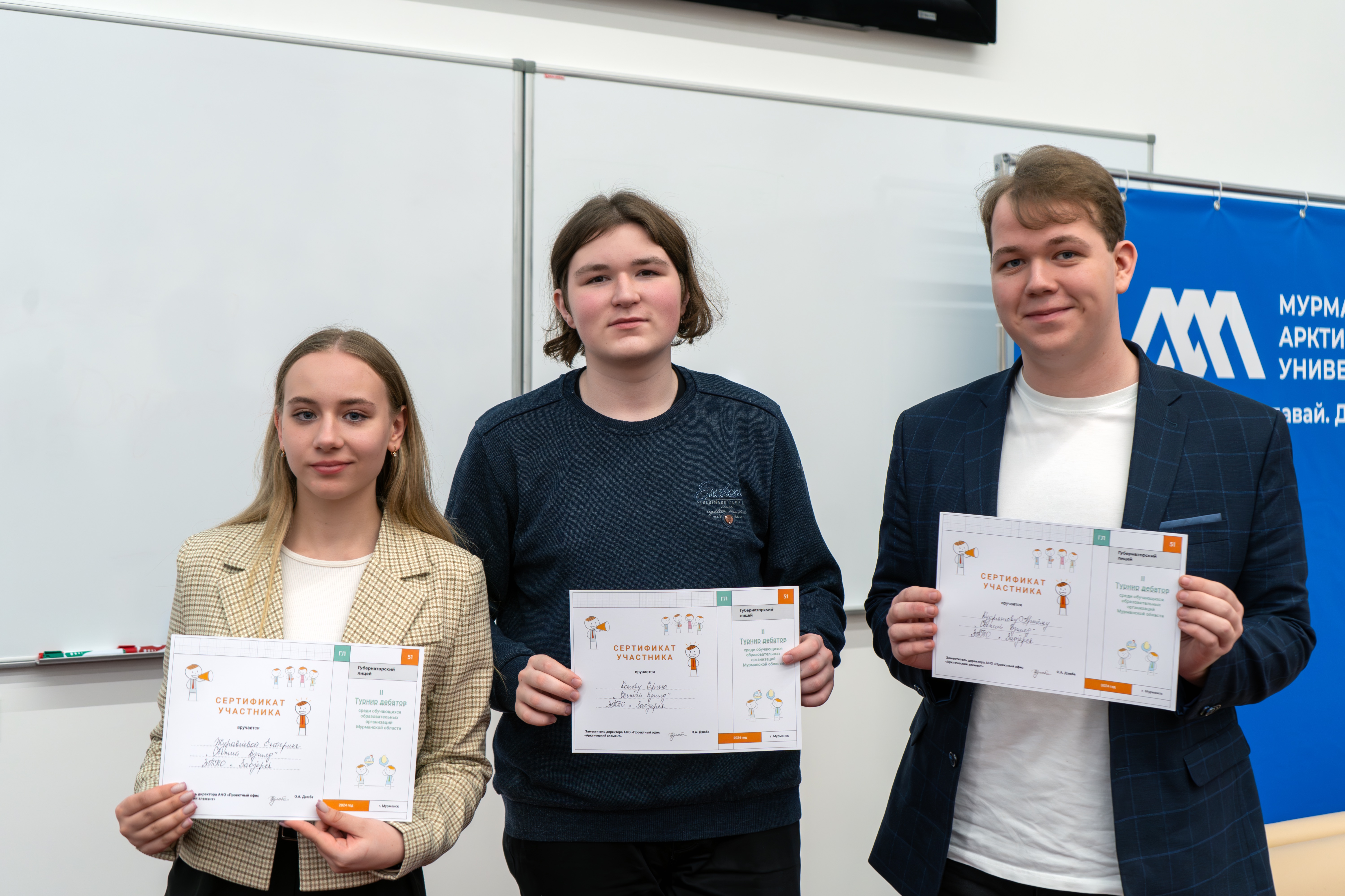 В Мурманске прошел отборочный этап регионального Турнира дебатов среди учащихся образовательных учреждений 26 марта на базе Мурманского арктического университета состоялись игры Северной лиги II Турнира дебатов среди школьников Мурманской области. Команды обсуждали самые актуальные и острые вопросы образования, например, отмену домашних заданий в школе, использование в учебе социальных сетей. Также участники соревнований приняли участие в мастер-классе по самопрезентации. В Турнире приняли участие 11 команд из пяти муниципальных образований. Призером соревнований стала команда из СОШ № 23, (Мурманск), победителем соревнований стала команда «Арсенал» (Североморск).